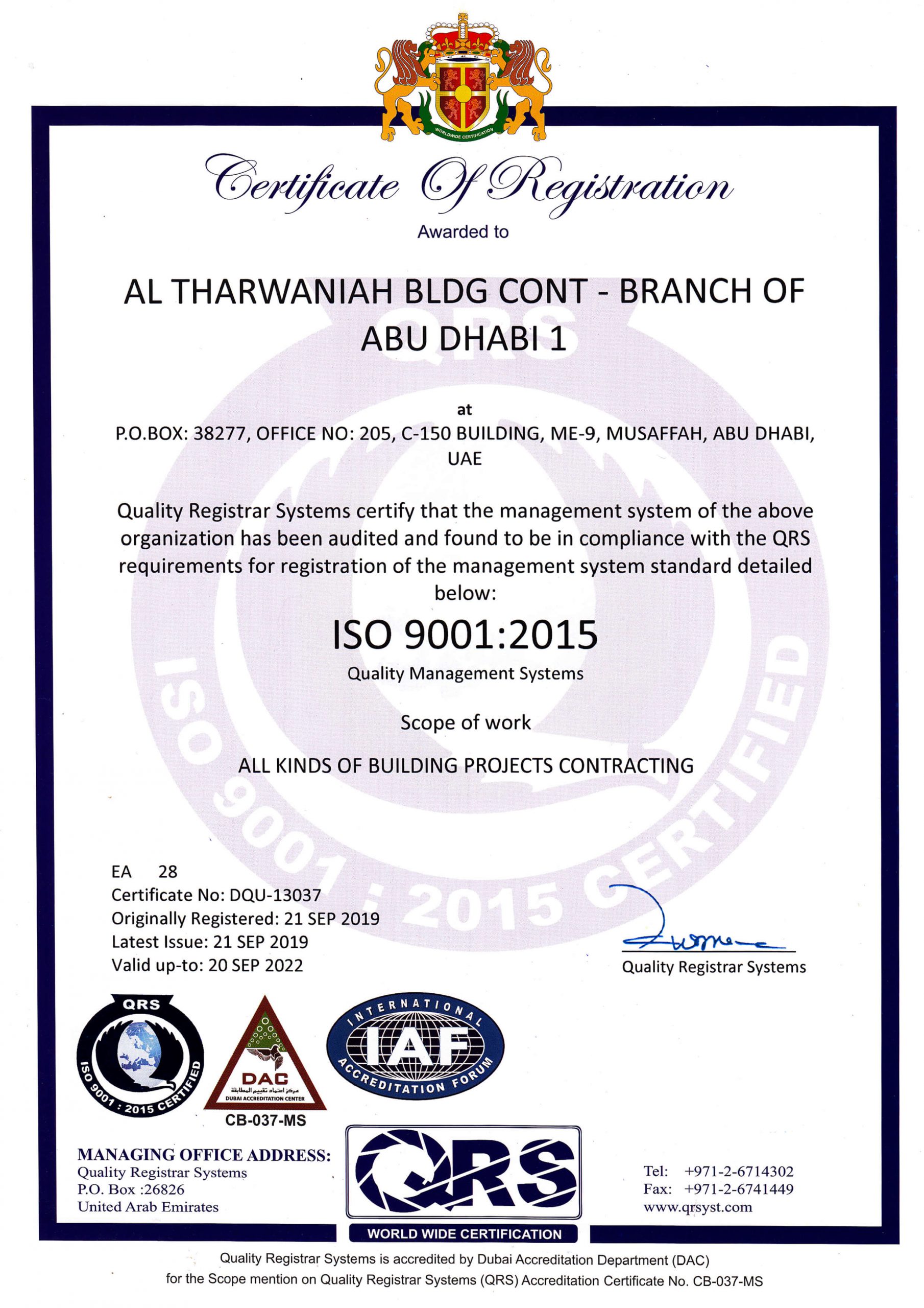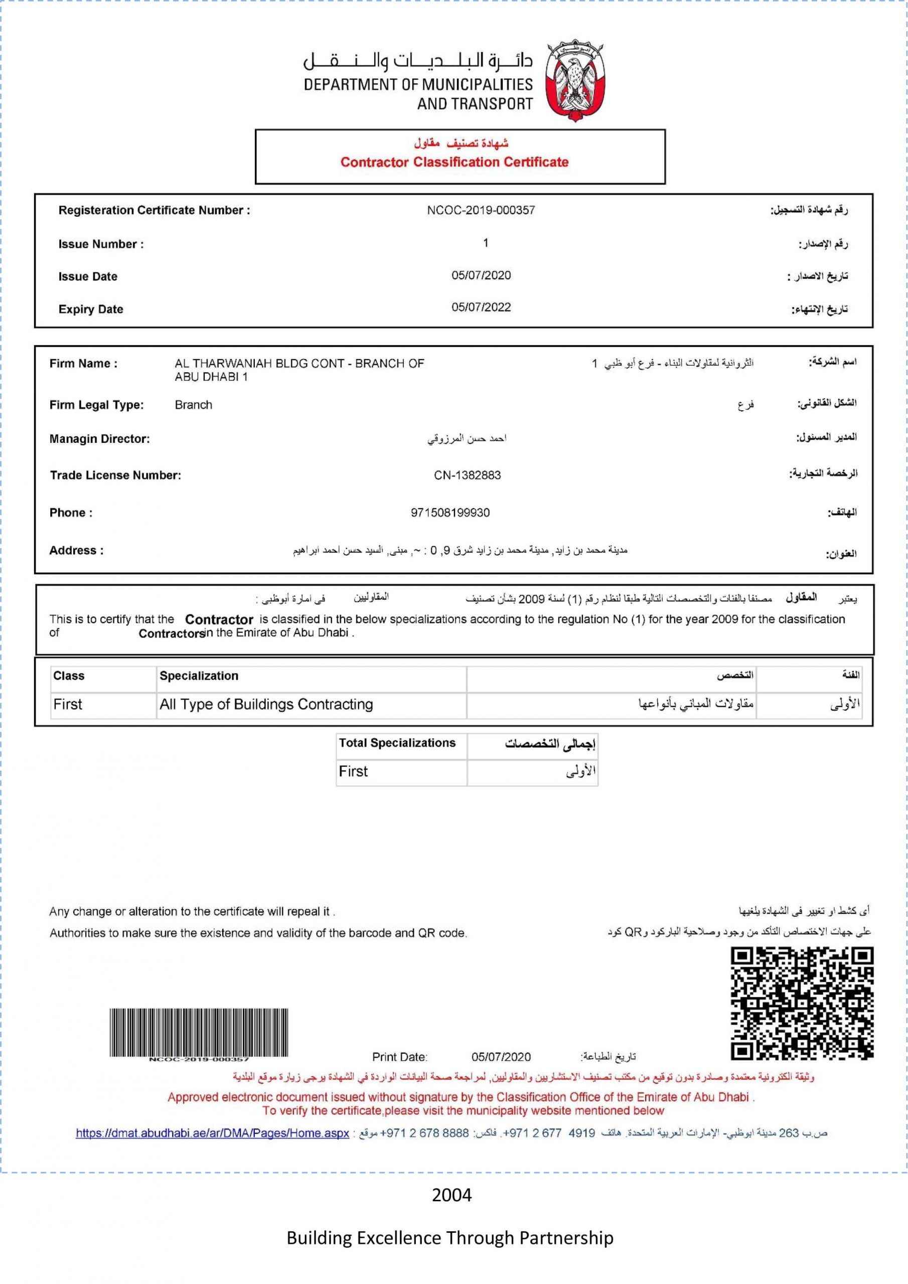 Al Tharwaniah Building Contracting Company (ATBC), founded in 2004, is a well‐established and reputed Civil construction company providing a complete spectrum of Engineering and construction services and solutions in the U.A.E. ATBC is a Grade 1 Construction Contracting Company as certified by the Economy & Planning Dept. Of the U.A.E. ATBC has executed a wide range of prestigious construction projects and is one of the key players in the U.A.E. construction sector. The company is fully equipped to handle all types of construction projects and related services and has the required capabilities to design, build, operate & manage turn key projects of any size.